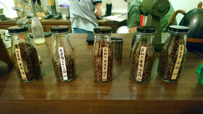手沖的咖啡豆也擺在半開放式的櫃台上,有著一罐一罐不同風味的咖啡豆,在仔細感受香氣後,在選擇自己想要的,老闆娘也會詳細的解說,讓不懂咖啡的我也能選的開心更品嘗到喜歡的味道。
